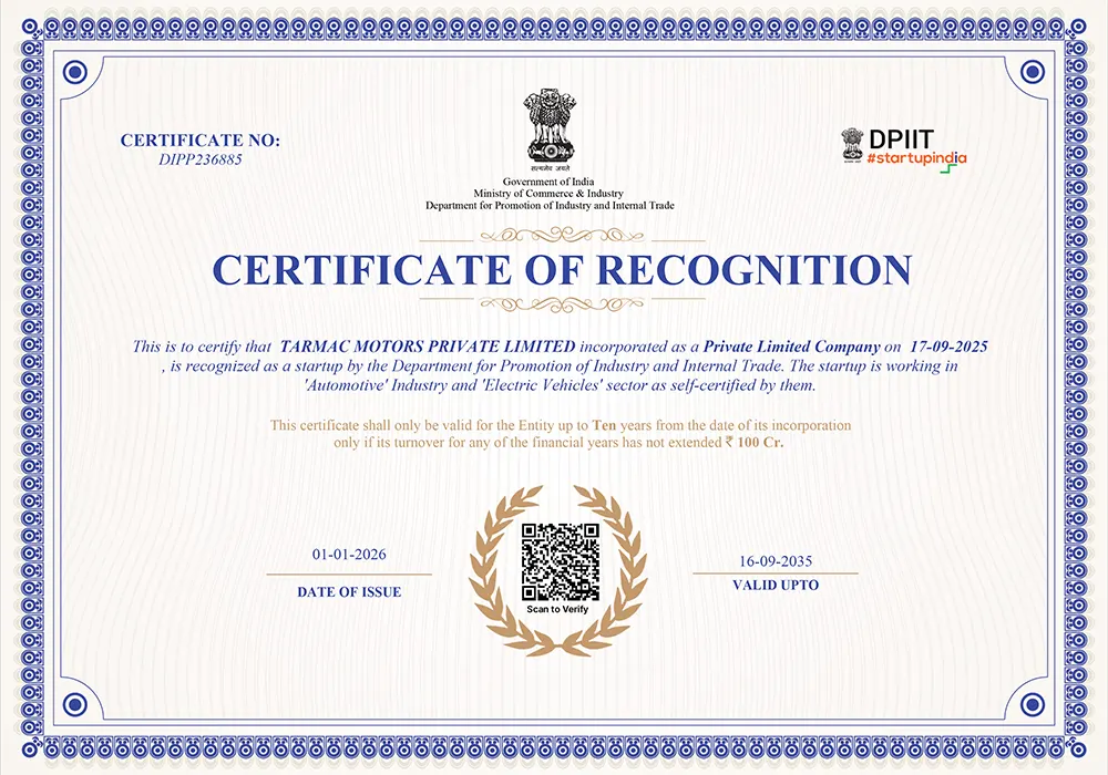 TARMAC Motors is one of the trusted electric scooter manufacturers in West Bengal. We are an ISO-certified brand that offers a variety of e-scooters for purchase. We have the most advanced and precise range of models designed to meet your commuting needs. We build our e-scooters using the latest industry technology to provide our customers with the best value for their money. Our e-scooters are 100% MADE IN INDIA and recognised for their excellence. So, if you are looking for an eco-friendly, comfortable and efficient riding experience, contact us today to learn more about our specifications and features.